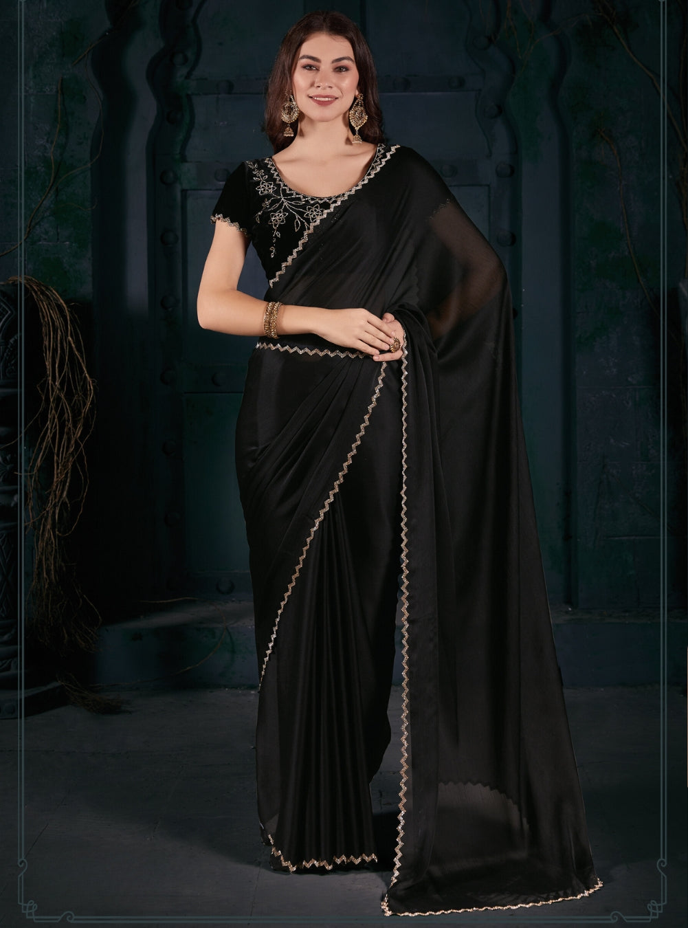 Black Radiant Georgette Silk Plain Handwork Border Saree