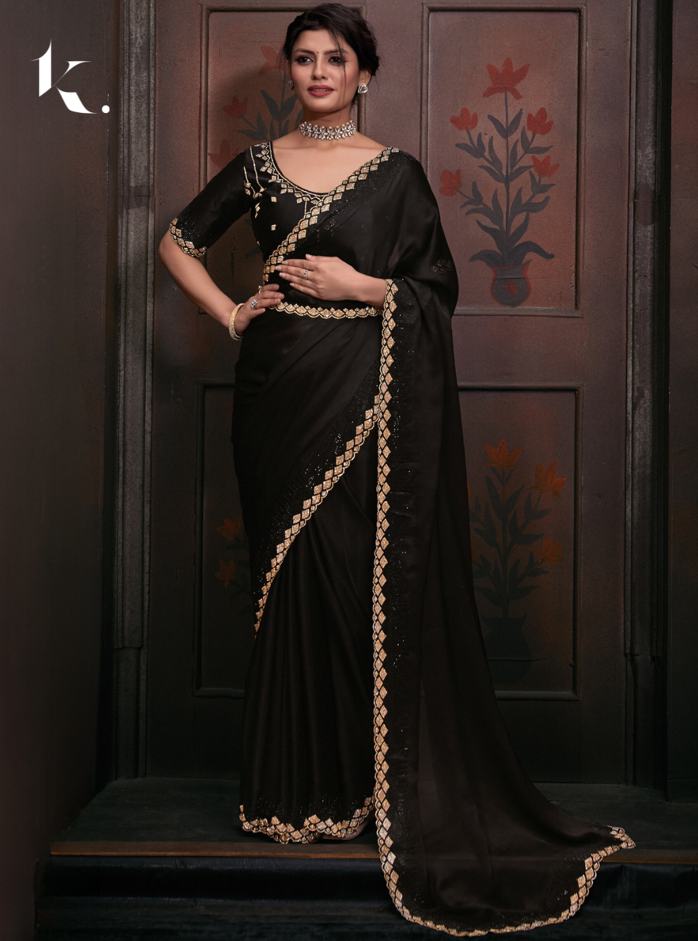 Black Radiant Premium Satin Silk Swarovski Work Saree