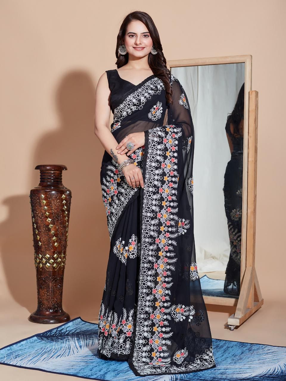 Pre-stitched saree: The pleats are already stitched, so you just need to wrap it around your waist. Makes wearing the saree quick and easy.