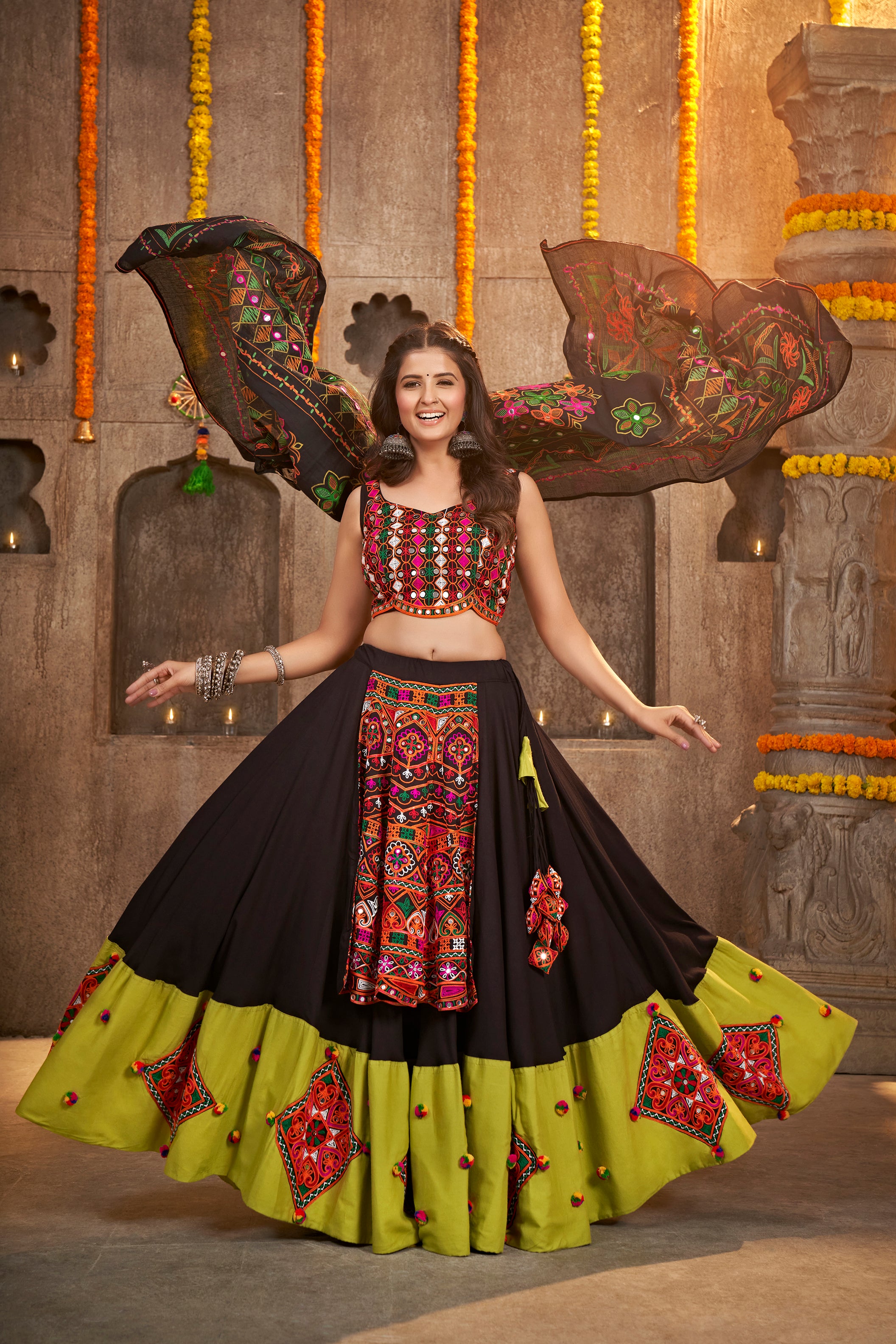 Black Viscose Rayon Thread Embroidered Semi Stitched Lehenga Choli