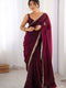 Wine Sequins Hand work Fandy Two Tone Satin Saree For Women