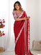 Red Sequins Embroidered Satin Chiffon Festive Wear Saree For Women