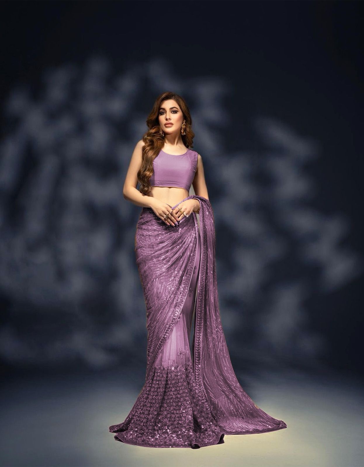 Purple Premium Georgette Sequence Embroidered Work Saree