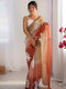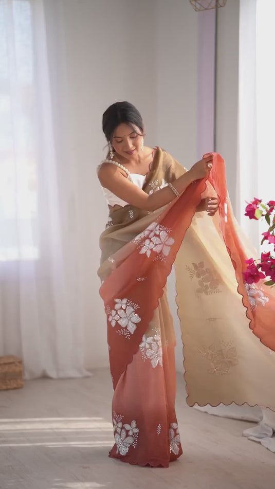 Beige Dual Sequins Embroidered Crunchy Crush Padding Party Wear Saree For Women