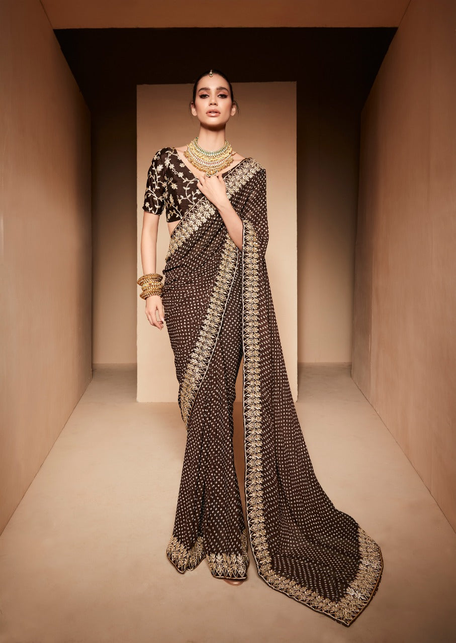 Black heavy georgette saree
