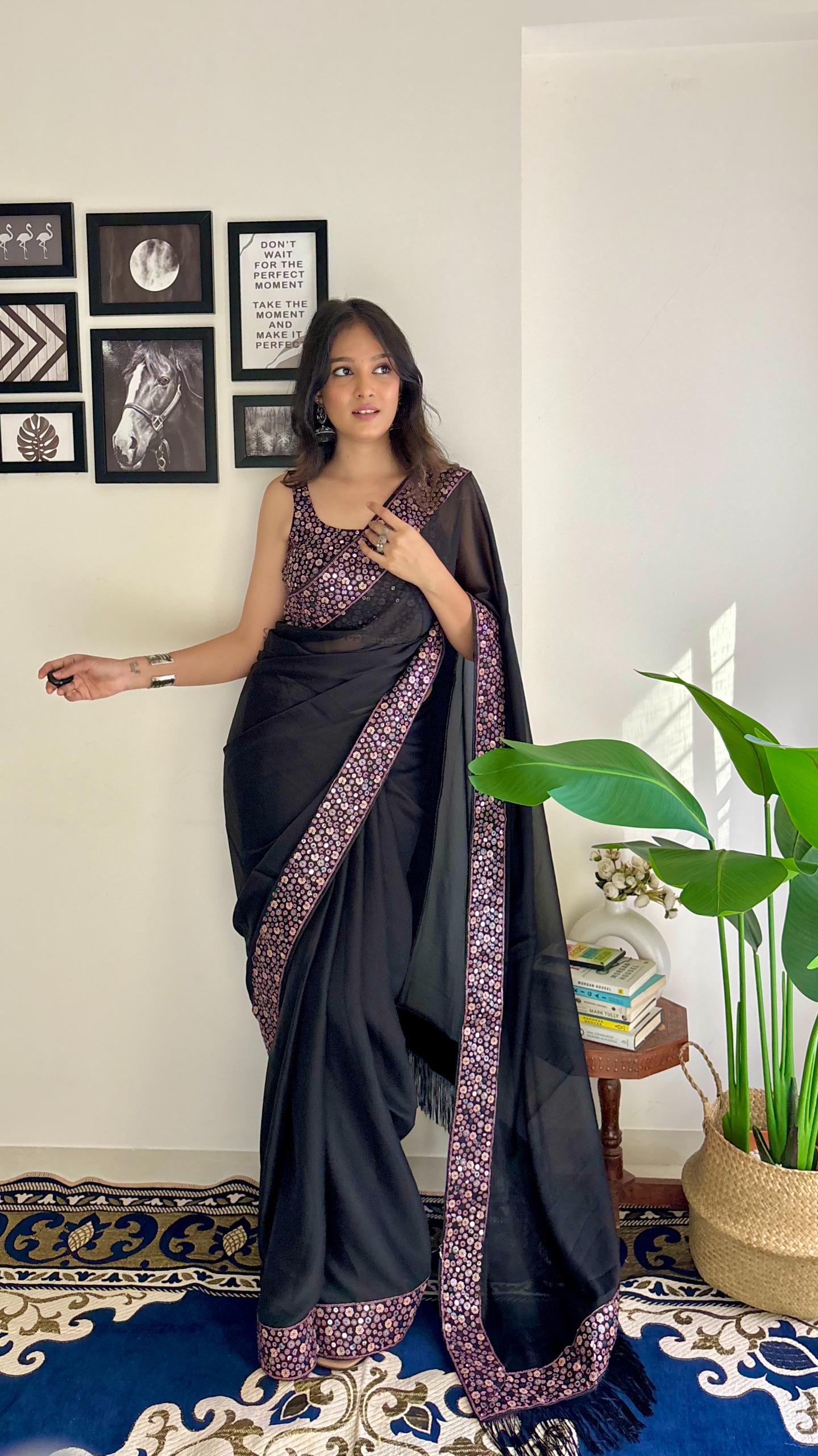 Black Heavy Georgette Sequence Embroidered Work Saree