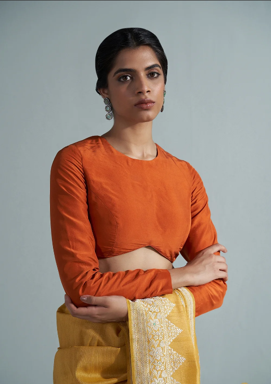 Orange Satin Pack Neck Backless Custom Made Blouse
