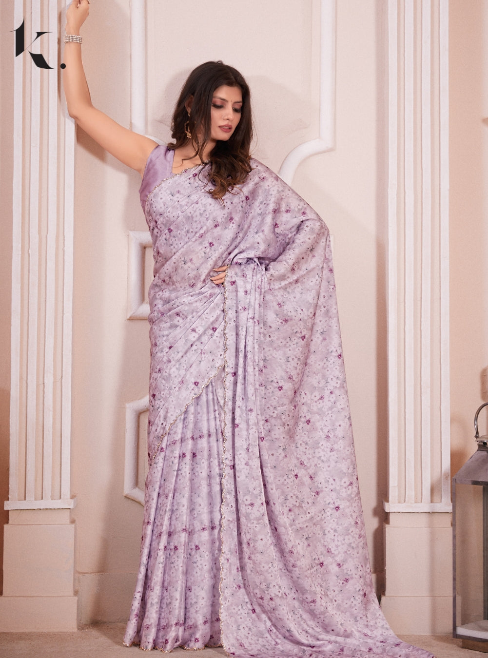 Lavender satin saree