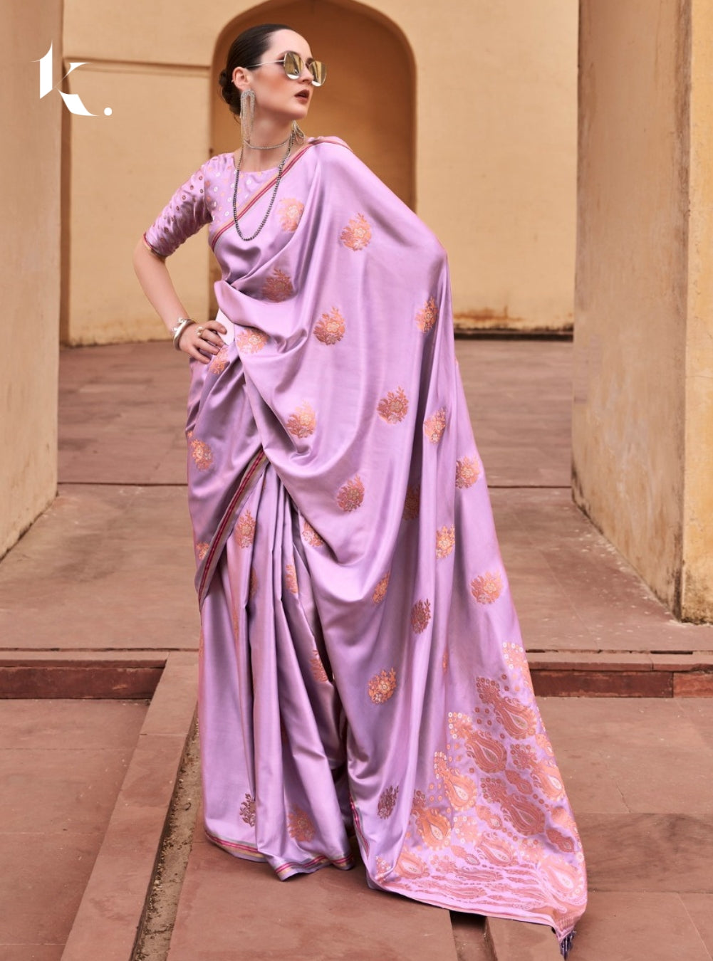 Lavender Pure Satin With Copper Zari Weaving Designer Saree