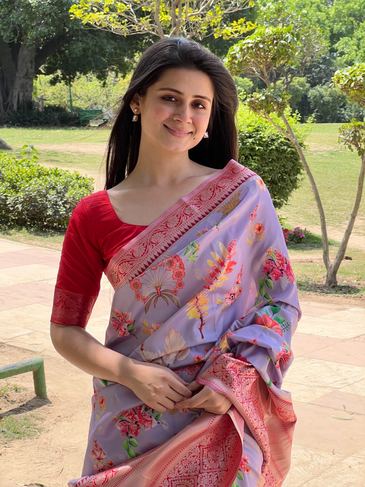 Lavender Soft Banarasi Silk Floral Digital Printed Zari Weaving Border Saree