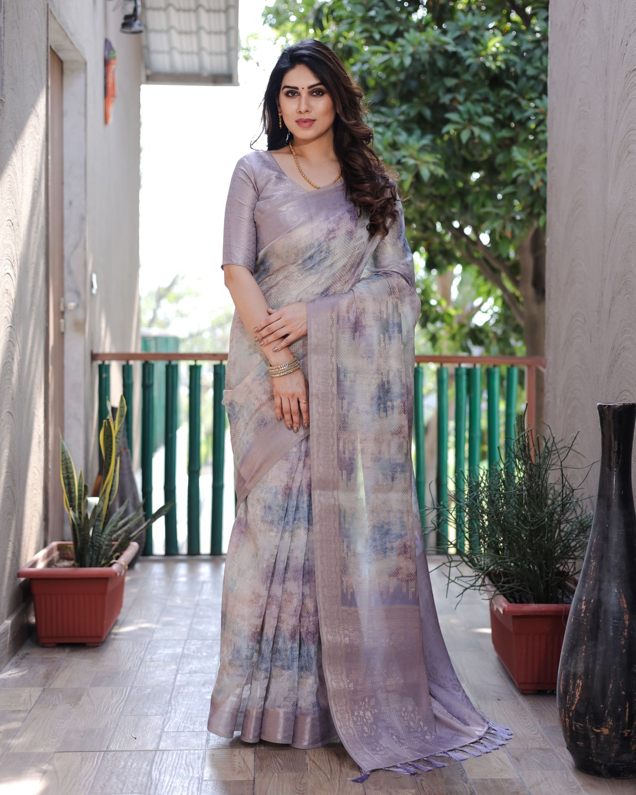 Lavender Soft Silk Prism Pattern Digital Print Saree