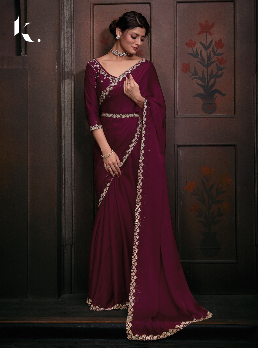 Maroon Radiant Premium Satin Silk Swarovski Work Saree
