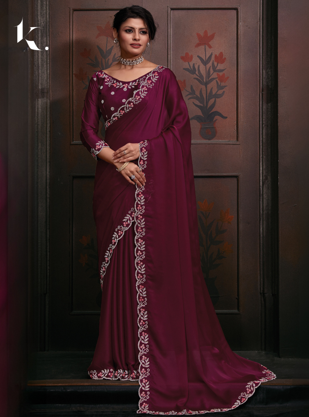 Maroon Elegant Premium Satin Silk Swarovski Work Saree
