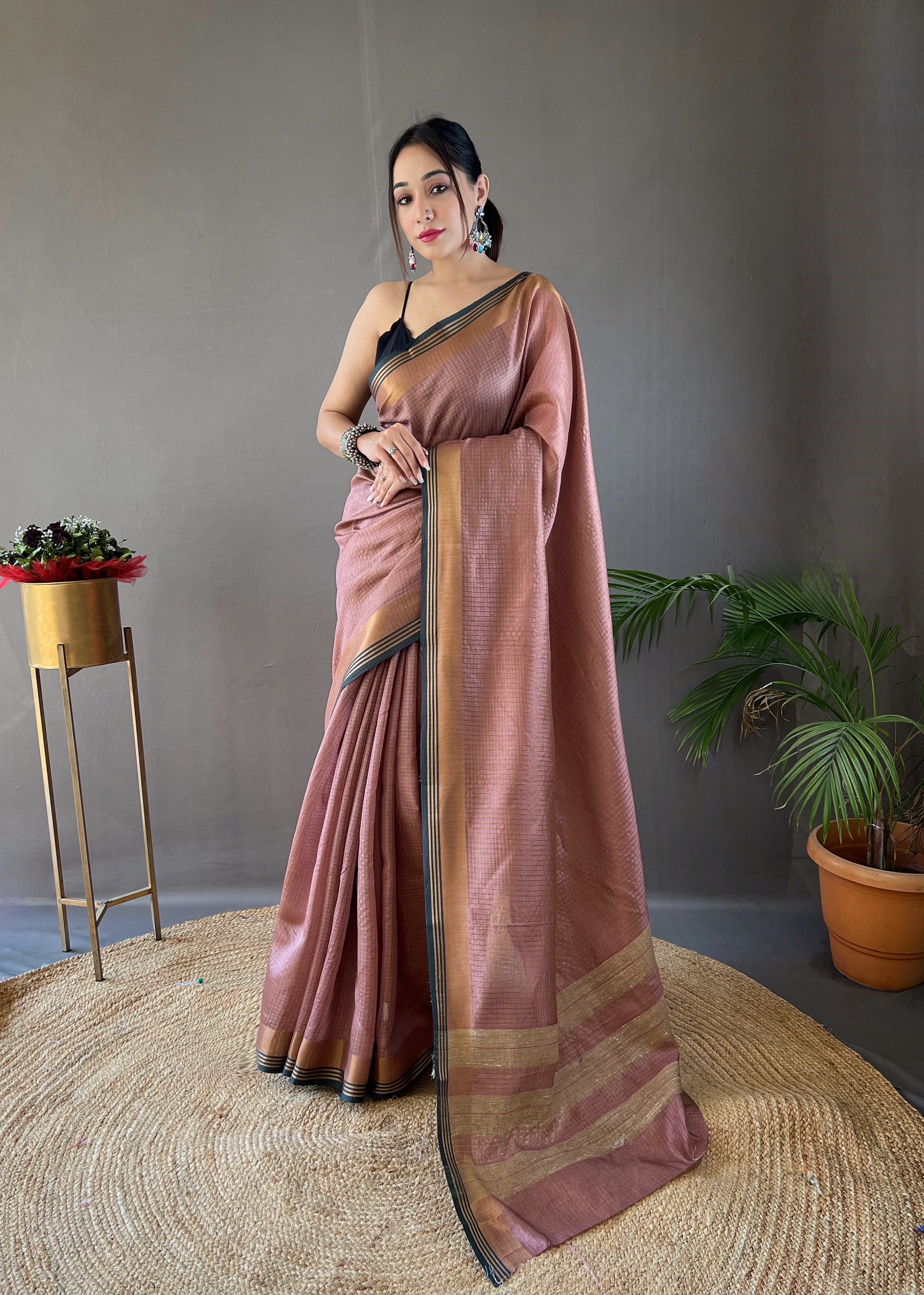 Mauve Soft Silk Zari Check Weaving Design Saree