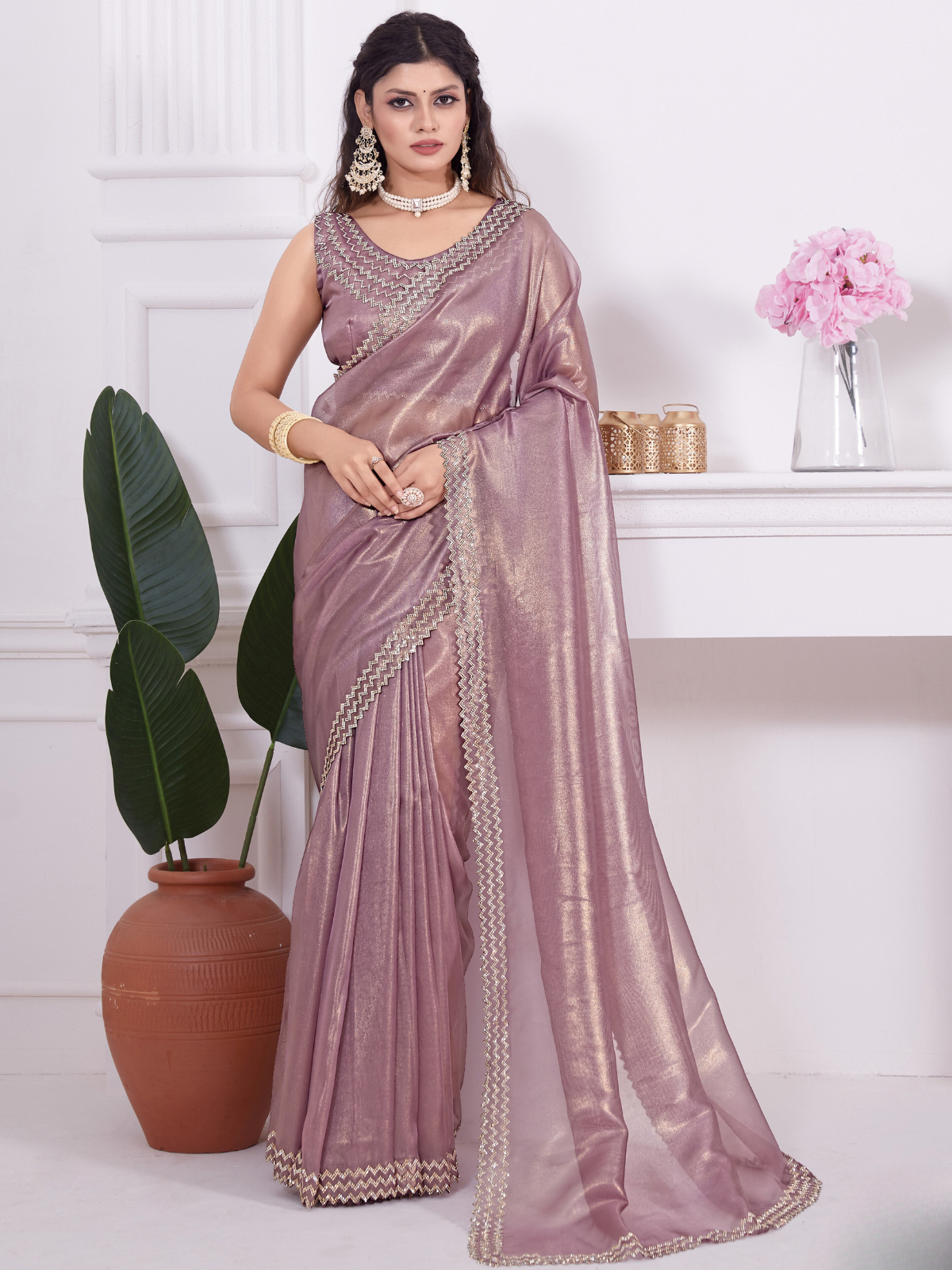 Onion Stunning Premium Metallic Organza Stone Work Saree