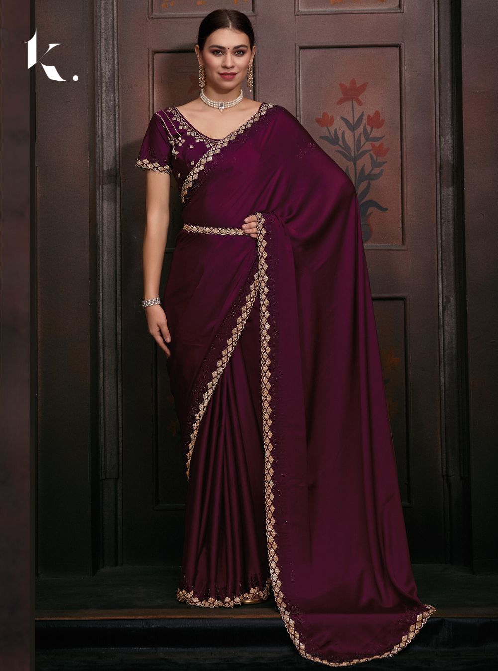 Wine Radiant Premium Satin Silk Swarovski Work Saree