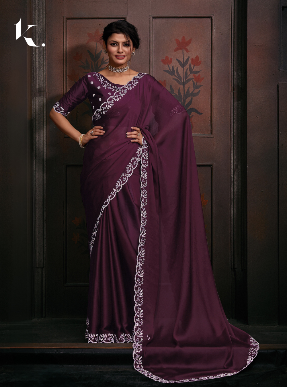 Wine Elegant Premium Satin Silk Swarovski Work Saree