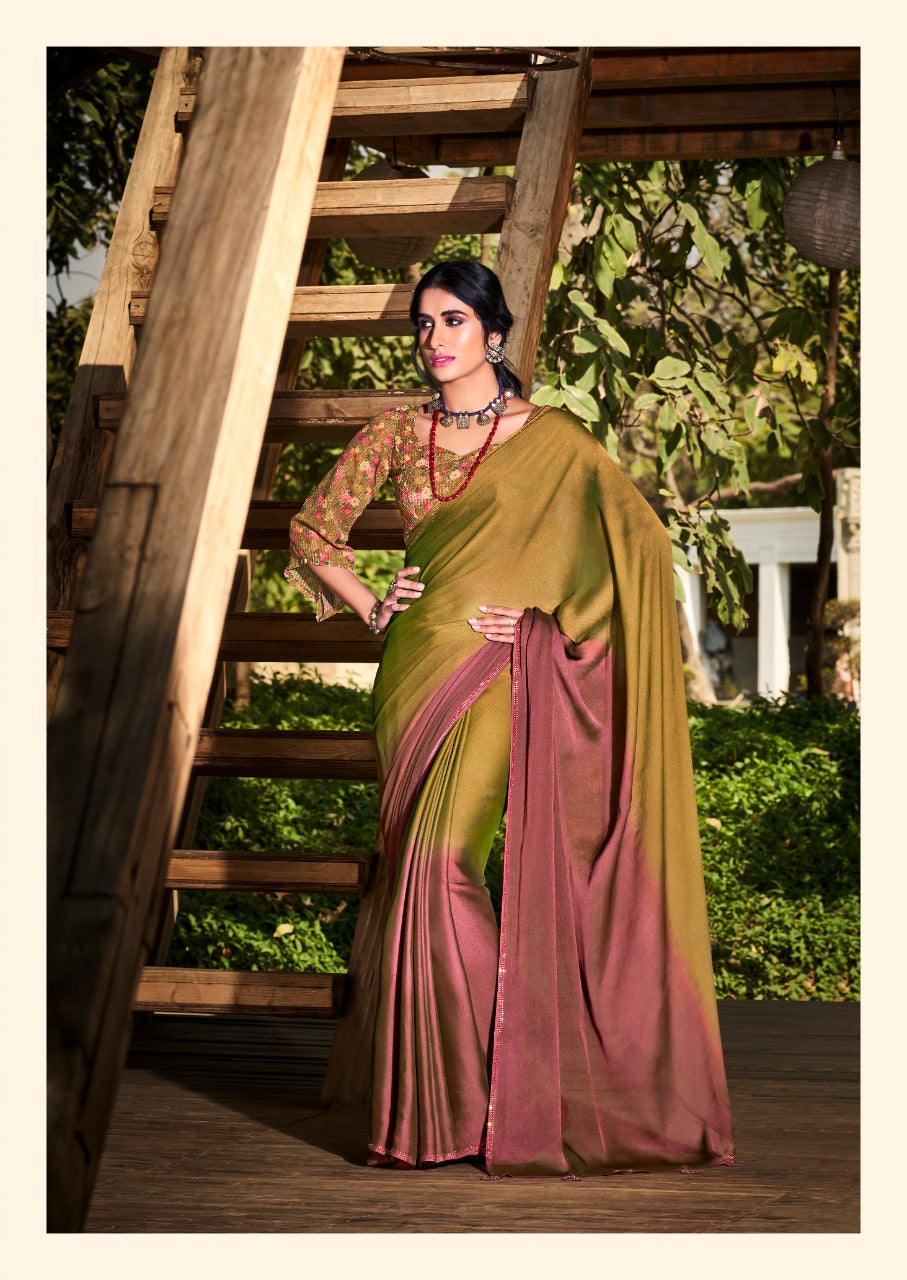 Mehendi Green Trendy 3D Velvet Chiffon Ombre Saree With Sequence Embroidered Blouse