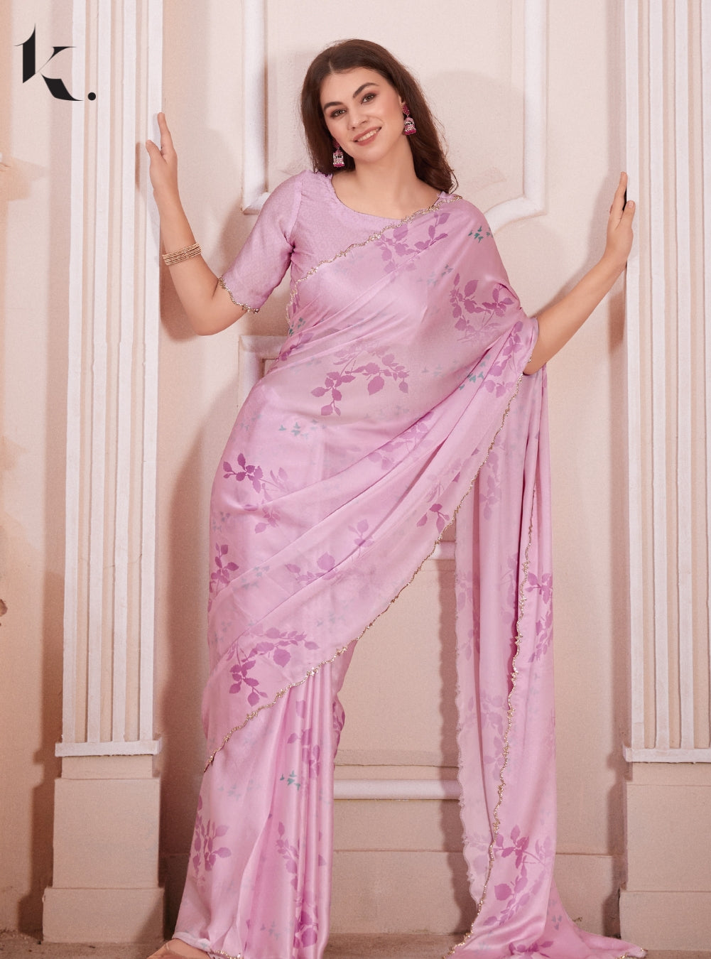Pink satin saree