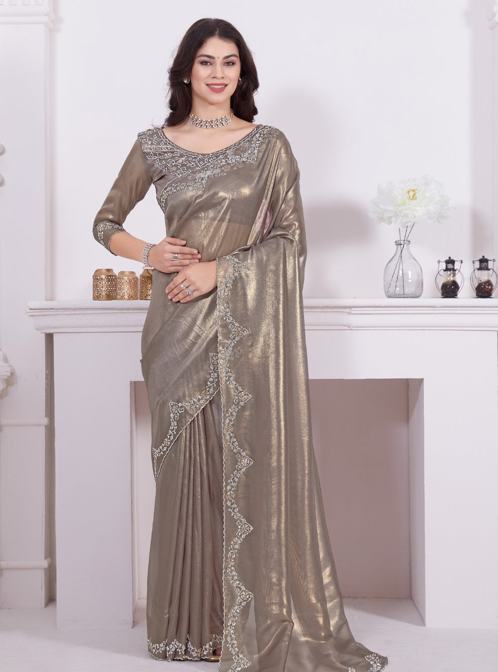 Sand Beautiful Premium Metallic Organza Stone Work Saree