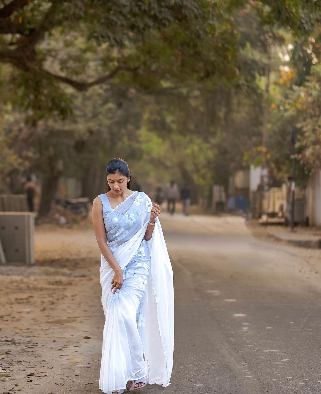 Pre-stitched saree: The pleats are already stitched, so you just need to wrap it around your waist. Makes wearing the saree quick and easy.