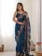 Teal Blue Sequins Embroidered Vichitra Silk Party Wear Saree